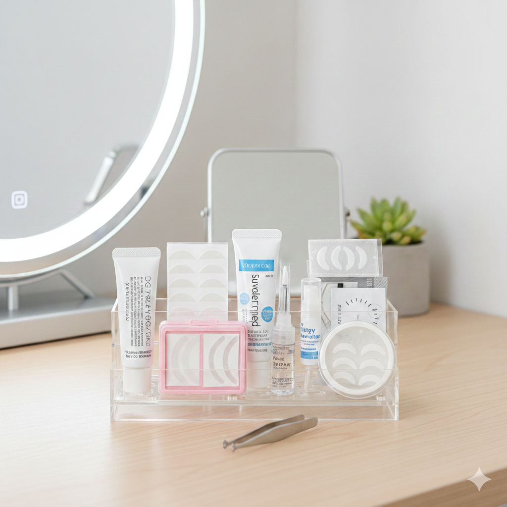 奥二重のまぶたは厚みや重みがあるため、強い接着力や食い込みを作れる接着タイプ・ファイバータイプが特におすすめです。初めてなら手軽に使えるテープタイプから試し、慣れてきたら自然さと持ちを両立できる接着タイプやファイバータイプにトライしてみるのが良いでしょう。肌トラブルを避けるため、成分表示をチェックし低刺激の商品を選ぶのも大切です。